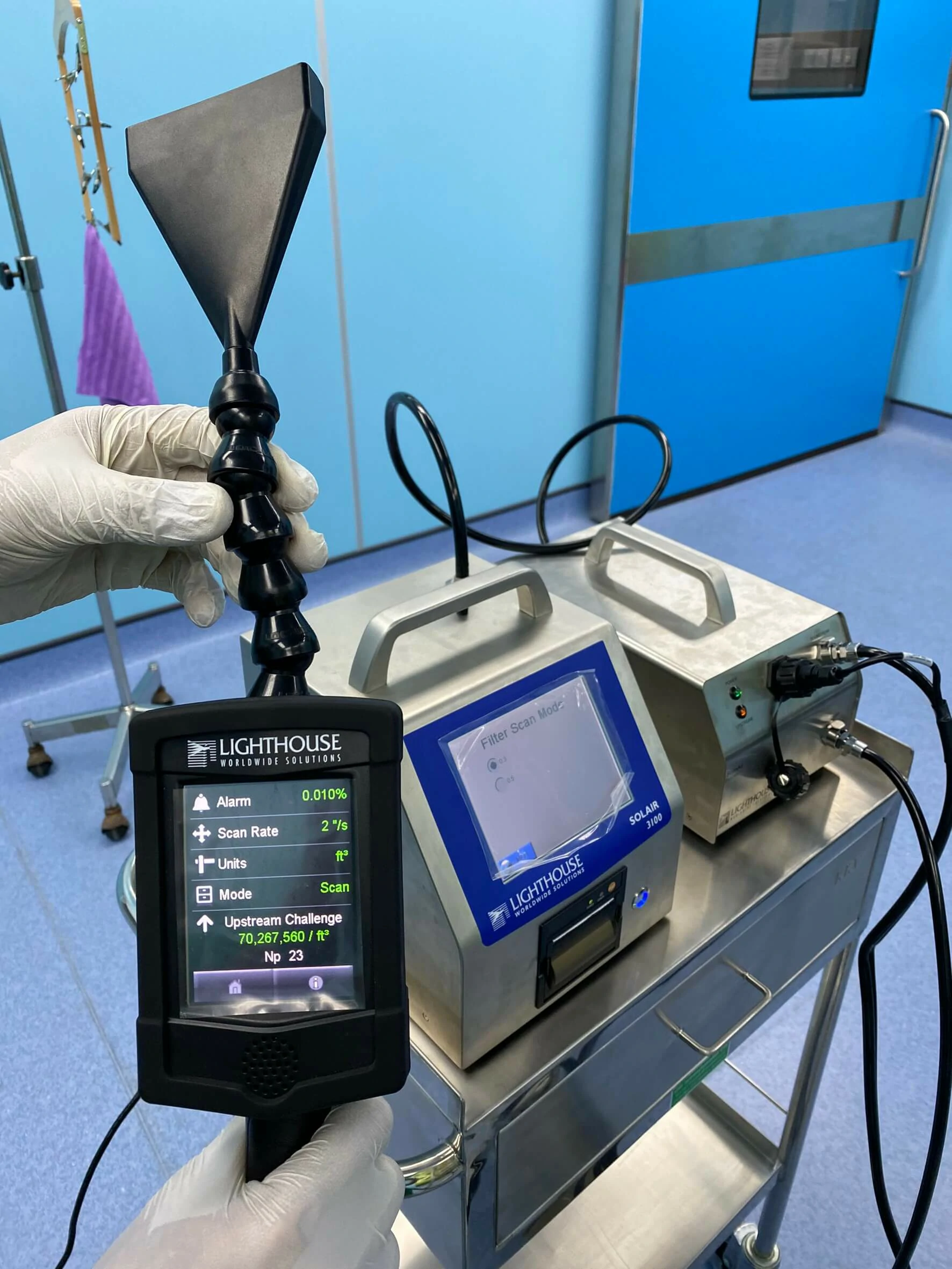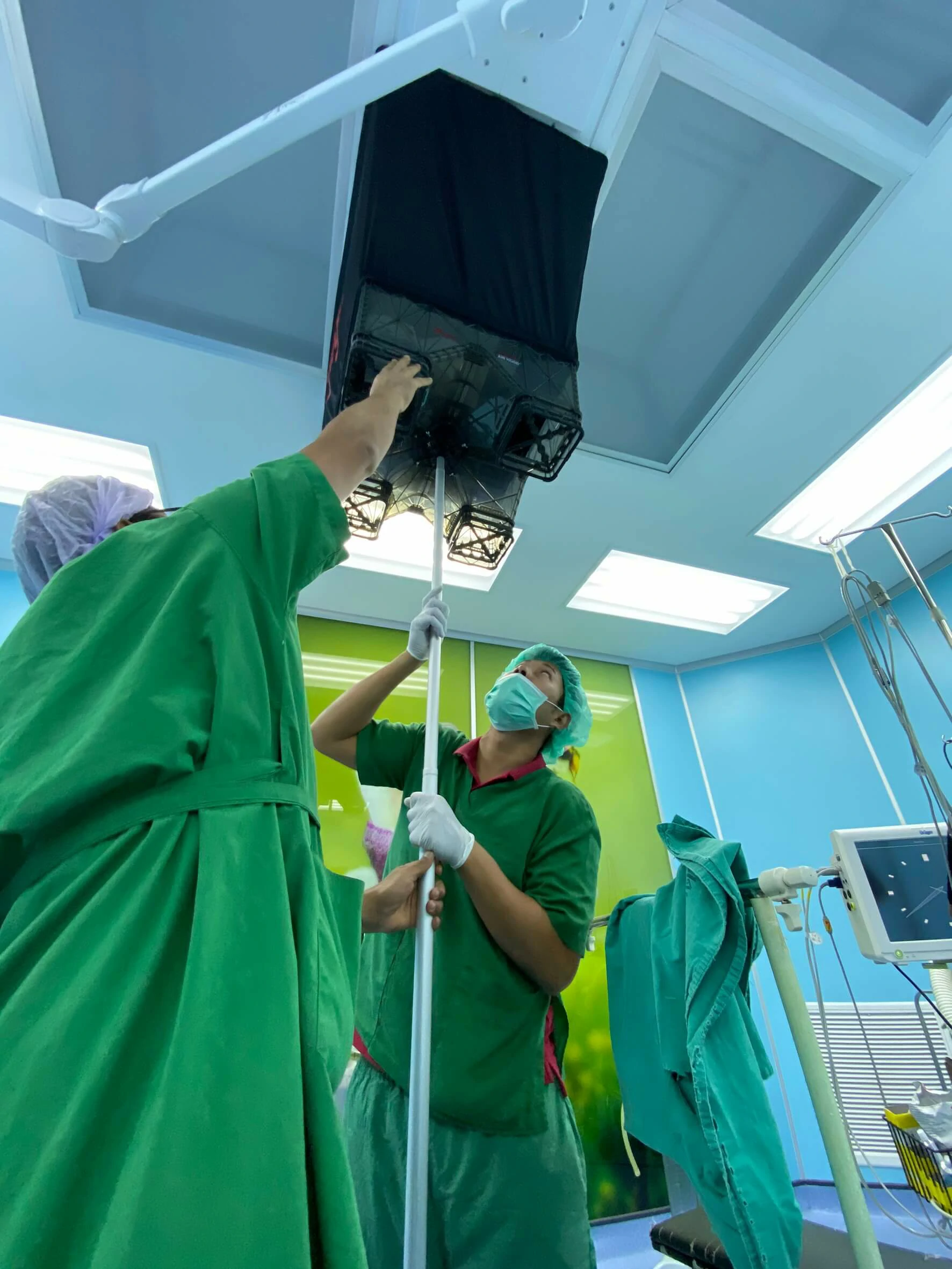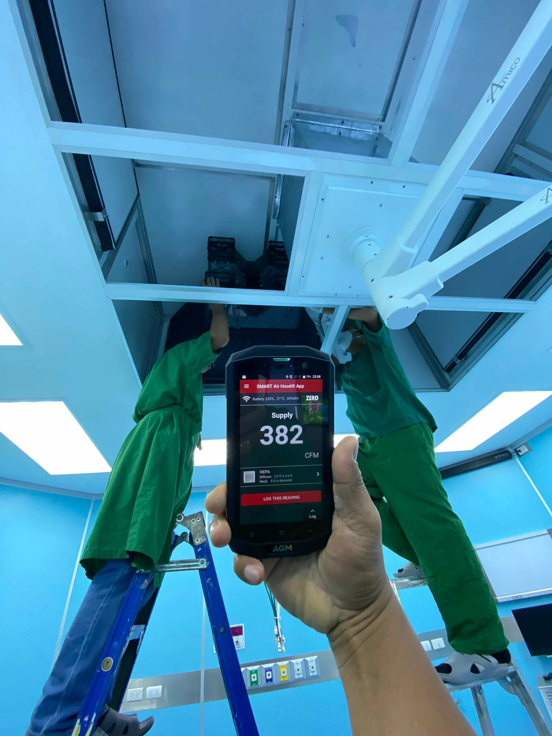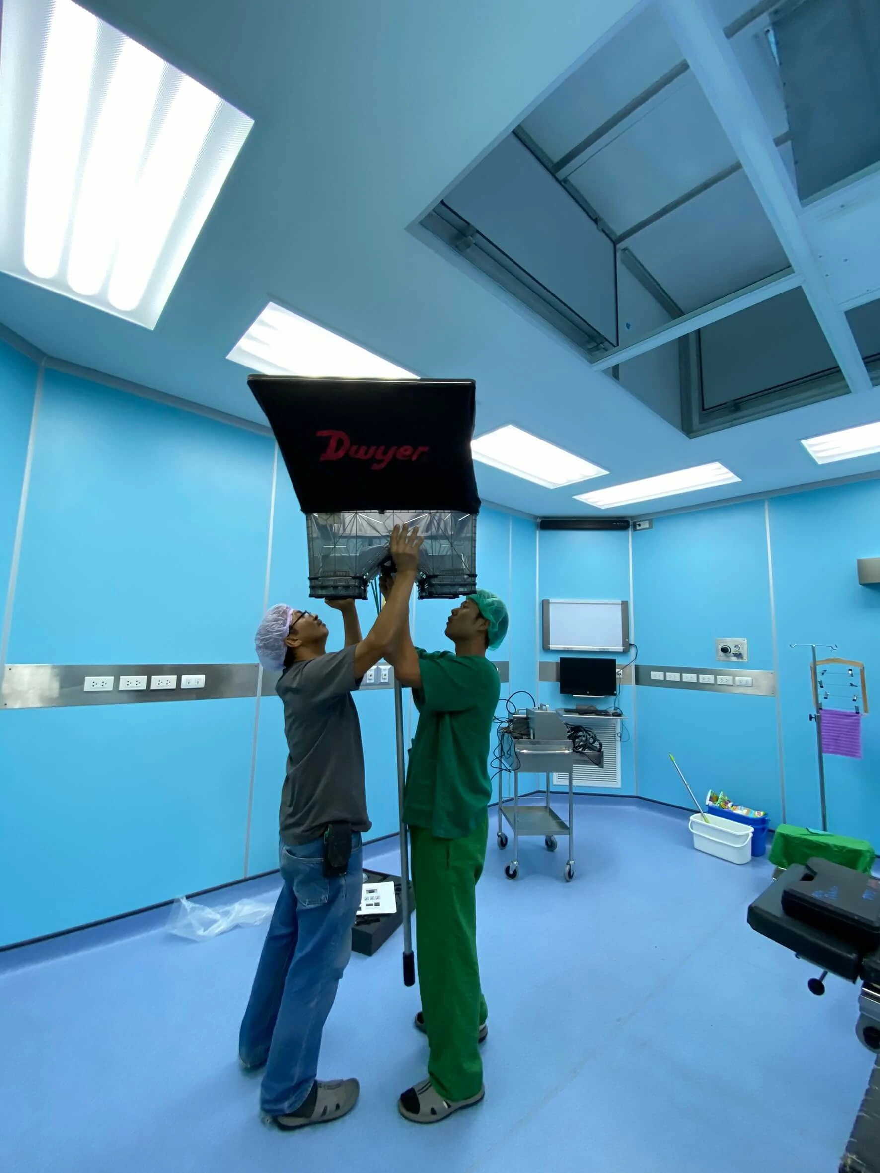 บรรยากาศการการใช้เครื่องตรวจสอบคุณภาพอากาศตามมาตรฐานห้องแรงดันลบ และบวก